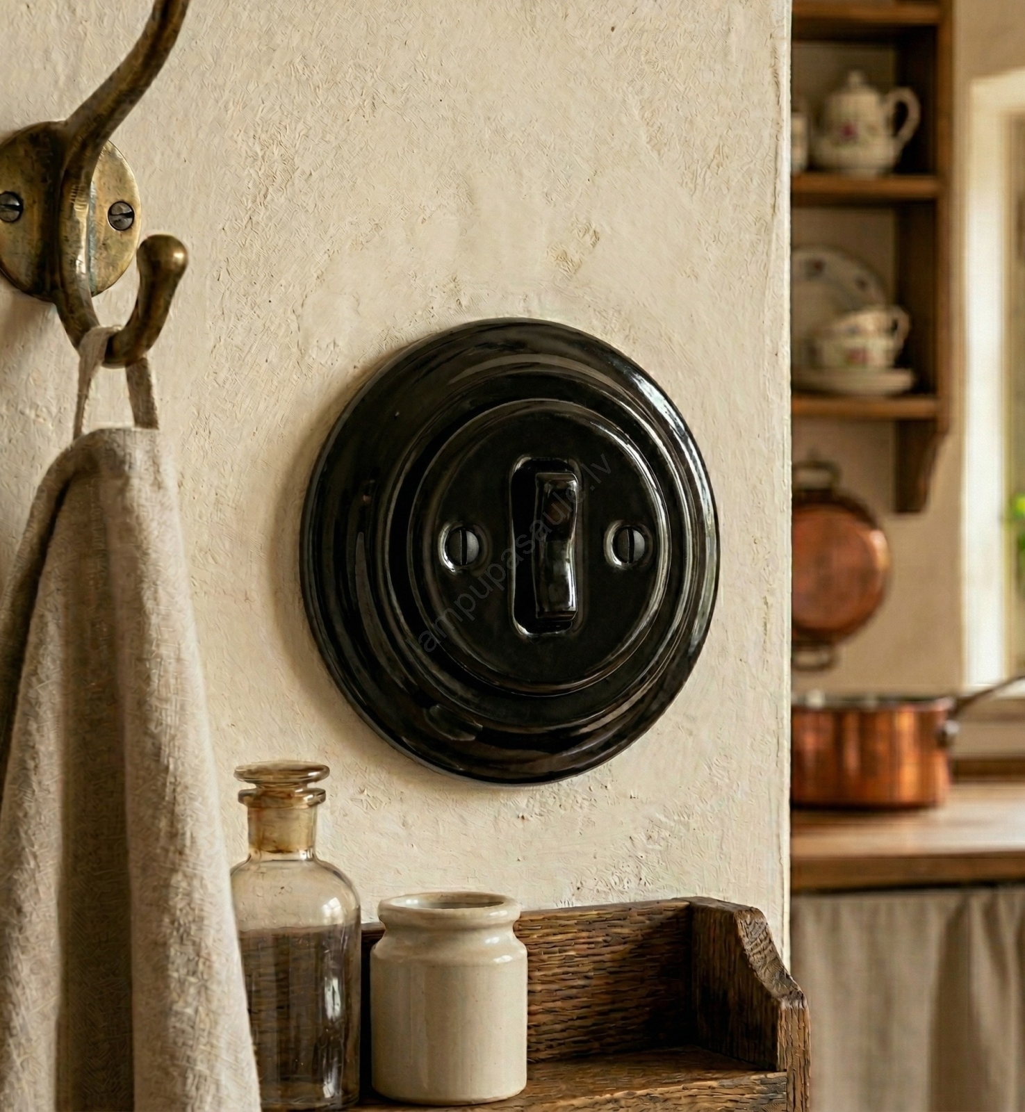 • Ar smalku porcelāna apdari tas piešķir jūsu elektroinstalācijai gaumīgu un elegantu izskatu.