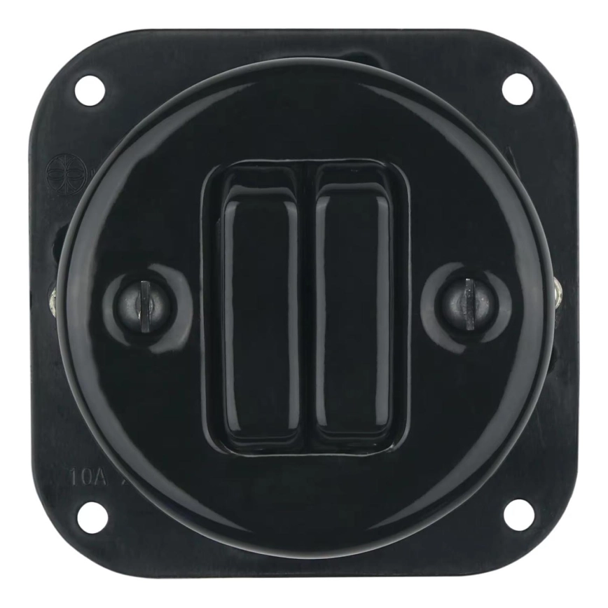 Bohemia-Design - Porcelāna retro dubultais slēdzis bez rāmja Nr. 5 melns | Lampupasaule