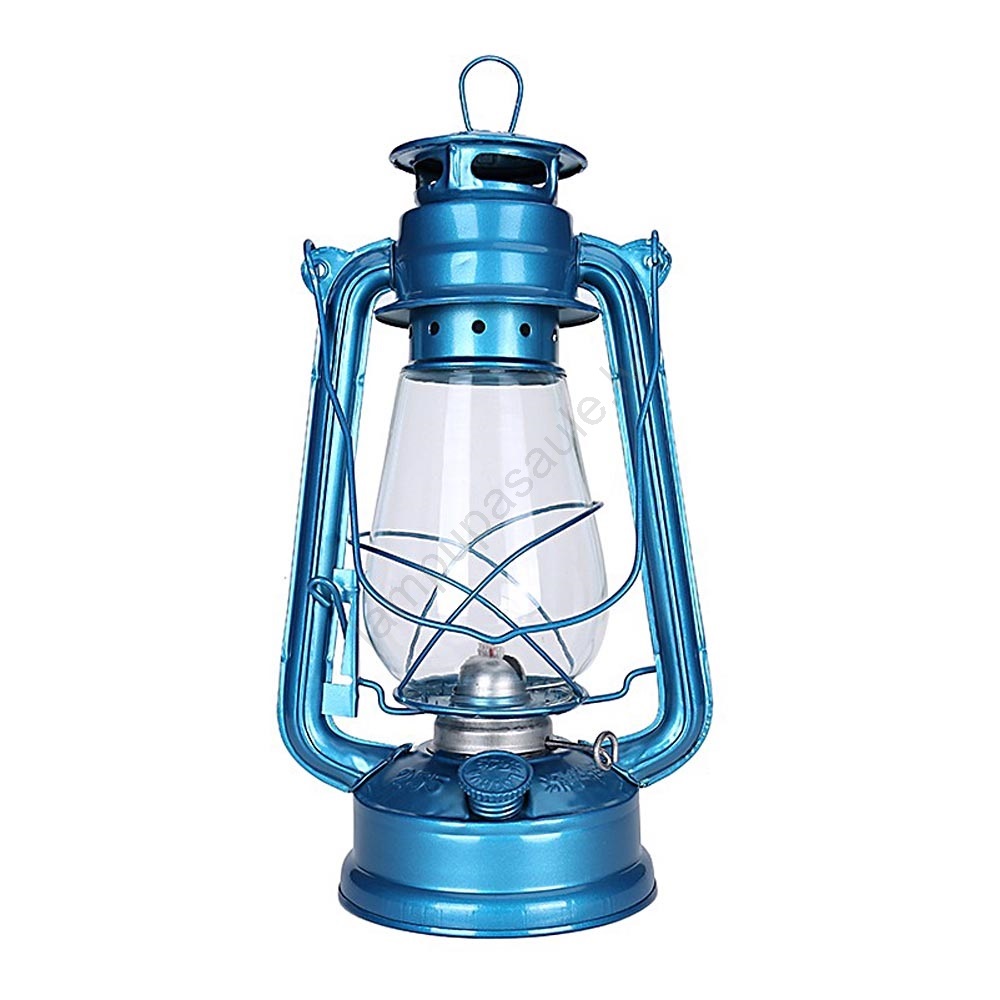 • Stilīga skārda petrolejas lampa ar stikla kolbu.