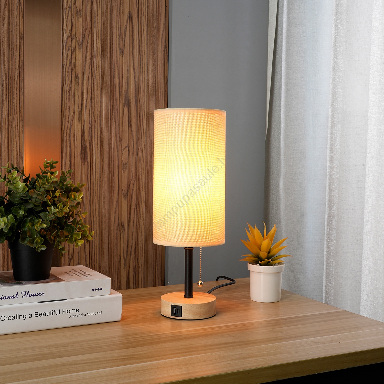 • Brilagi - Galda lampa ar USB pieslēgvietu TABLON 1xE27/25W/230V ozols/melns/bēšs
