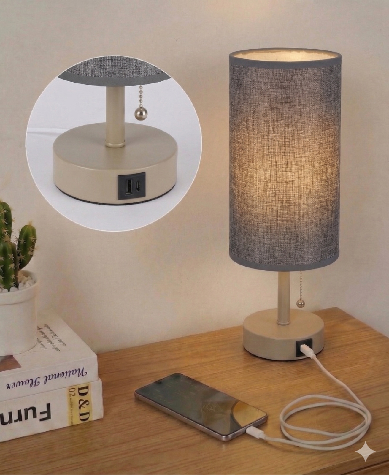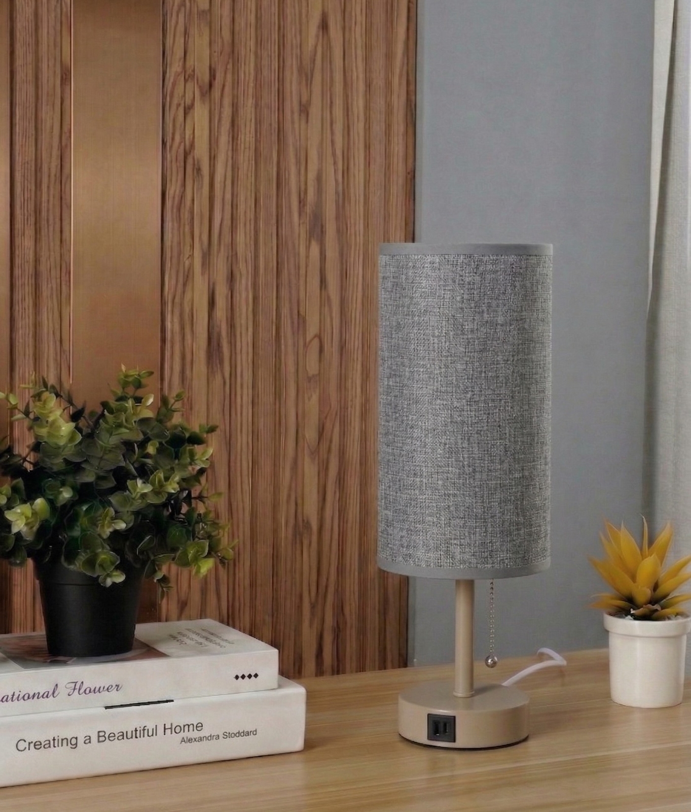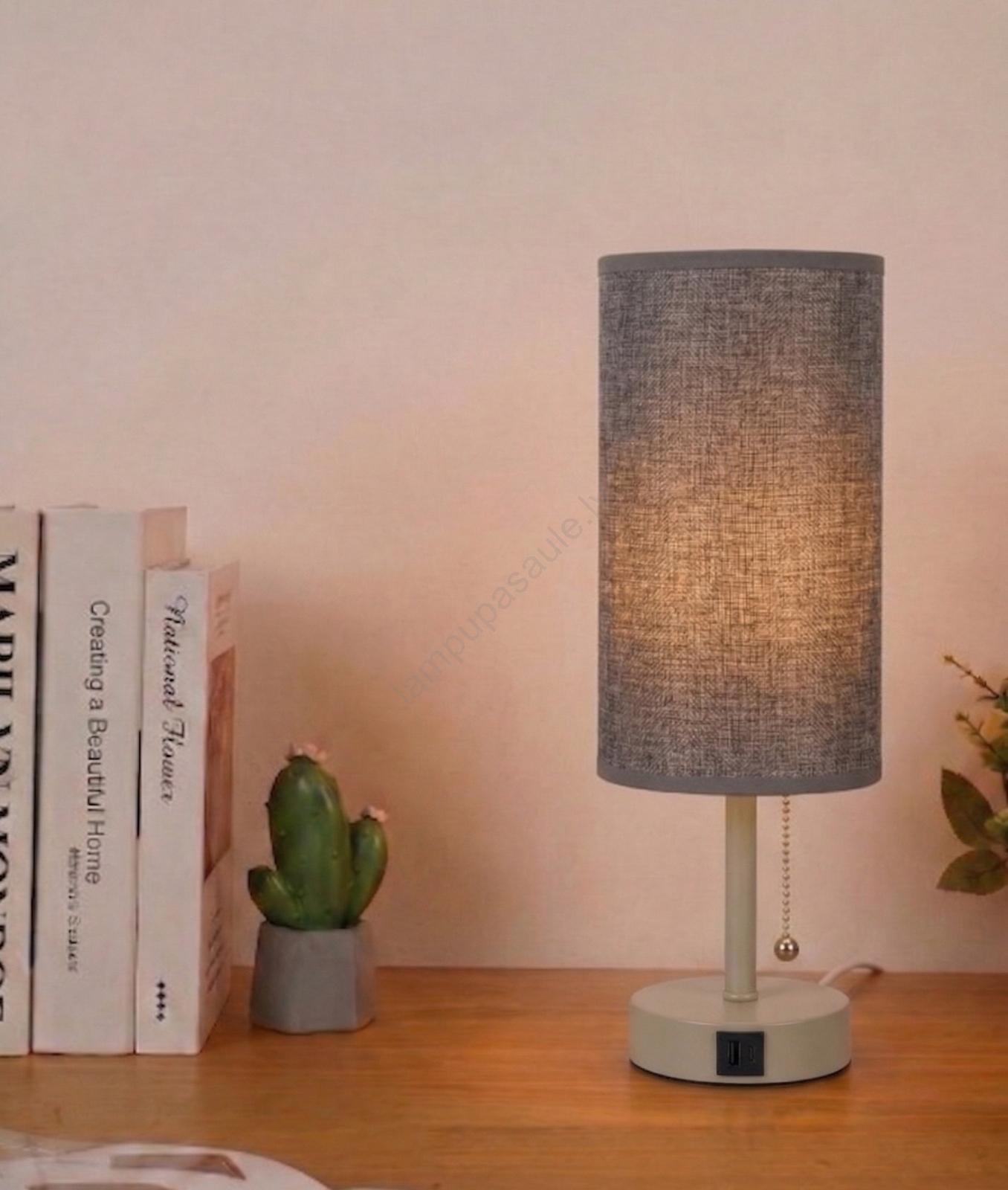 • Brilagi - Galda lampa ar USB portu TABLON 1xE27/25W/230V bēša/pelēka
