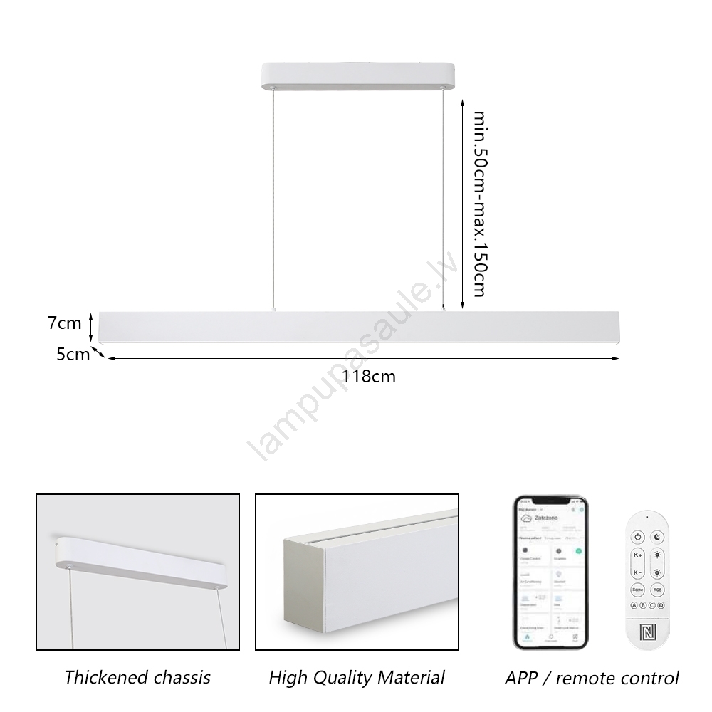 • Var dimmēt un mainīt gaismas krāsu, izmantojot telefonu vai tālvadības pulti.