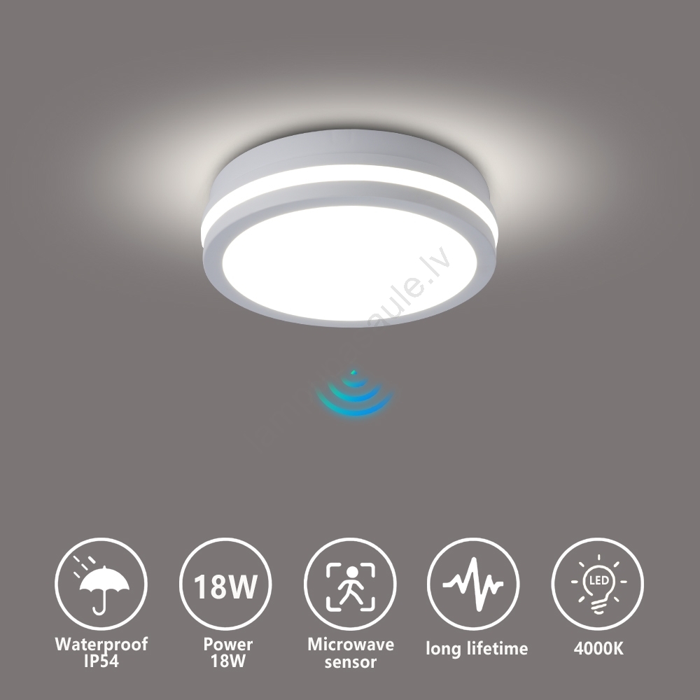 • Brilagi - LED āra griestu gaismeklis ar sensoru BENE LED/18W/230V Ø 21,5 cm balts IP54