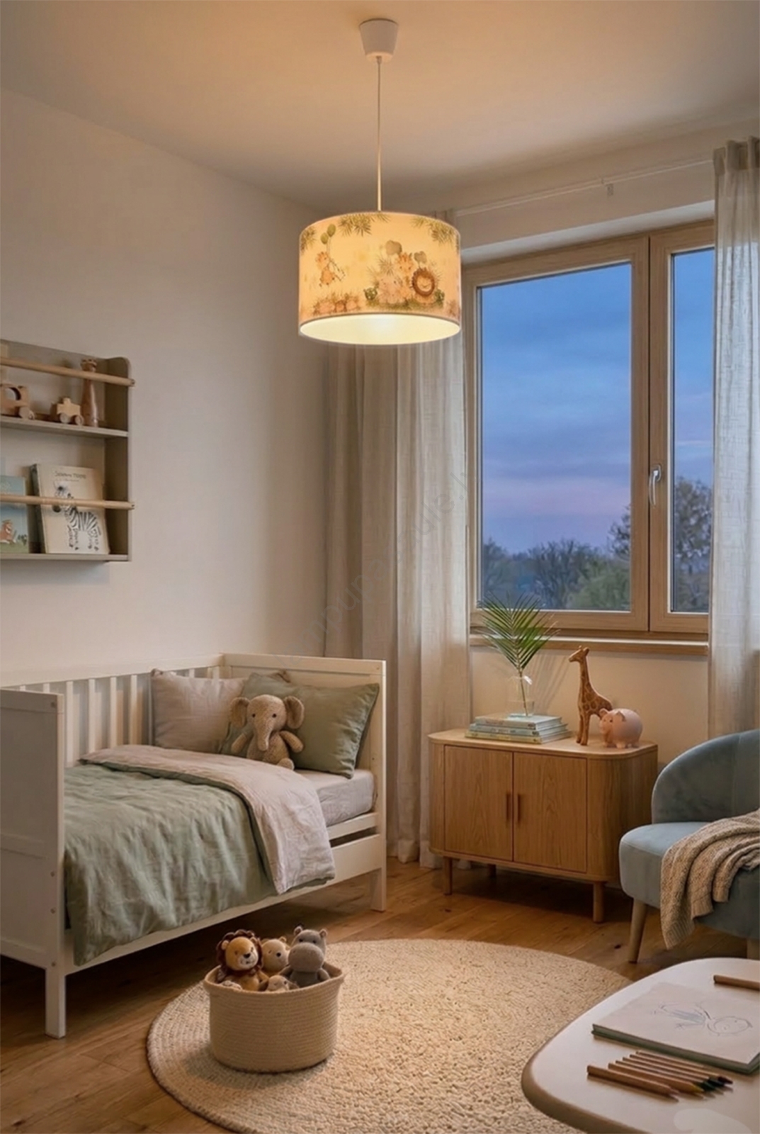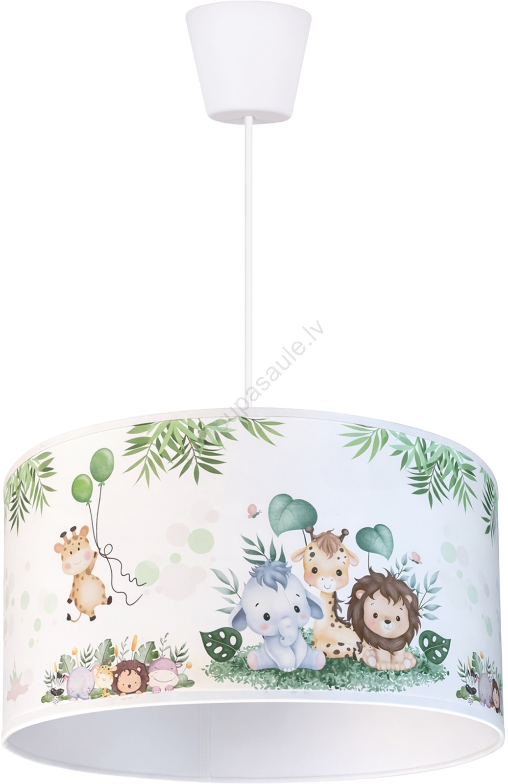 Brilagi - LED bērnu pakaramais gaismeklis ar vadu BOBO 1xE27/10W/230V Ø 35 cm balts/džungļu raksts izceļas ar jauku un funkcionālu dizainu.  Spuldze ar E27 cokolu irpiemērota lampai. Šeit, varat iegādāties citas spuldzes par izdevīgām cenām. Tā būs interesants jūsu mājas papildinājums.