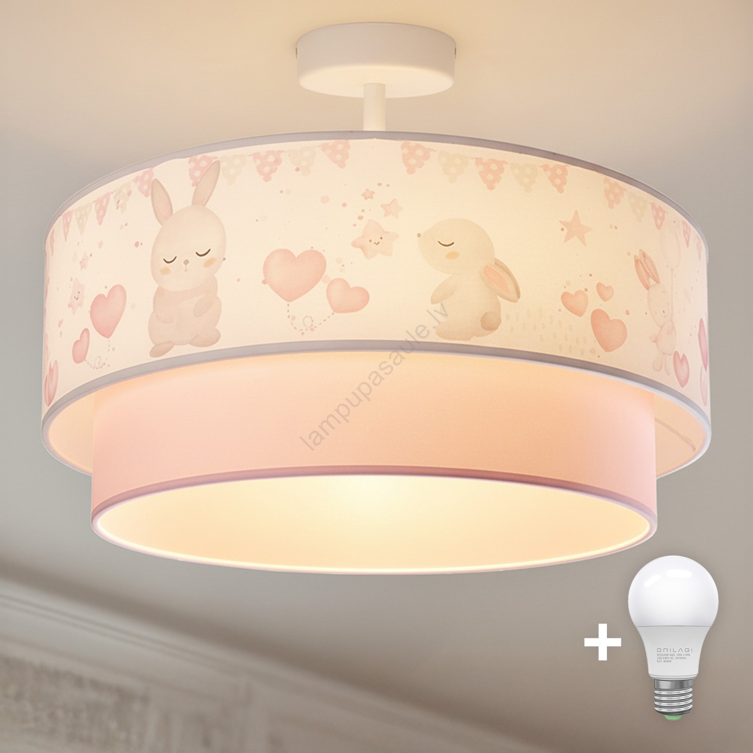 Brilagi - LED bērnu virsmas griestu lustrs BOBO 1xE27/10W/230V diam. 40 cm krēmkrāsa/rozā/zaķīši izceļas ar jauku un funkcionālu dizainu.  Spuldze ar E27 cokolu irpiemērota lampai. Šeit, varat iegādāties citas spuldzes par izdevīgām cenām. Tā būs interesants jūsu mājas papildinājums.