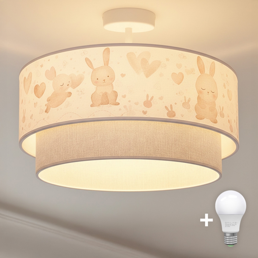 • Brilagi - LED bērnu virsmas griestu lustrs BOBO 1xE27/10W/230V diam. 40 cm krēmkrāsa/rozā/zaķīši