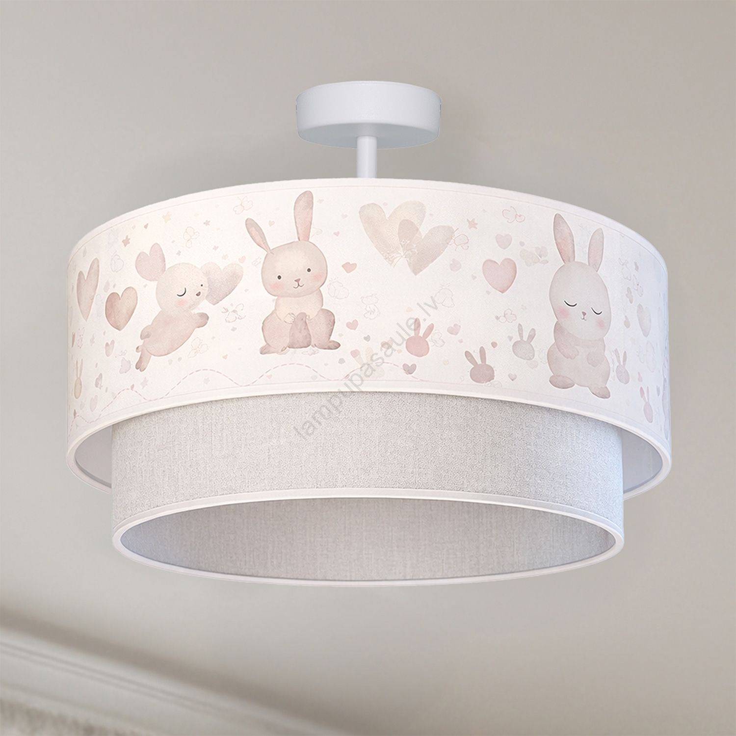Brilagi - LED bērnu virsmas griestu lampa BOBO 1xE27/10W/230V Ø 40 cm krēmkrāsa/pelēka ar zaķīšu motīvu izceļas ar jauku un funkcionālu dizainu.  Spuldze ar E27 cokolu irpiemērota lampai. Šeit, varat iegādāties citas spuldzes par izdevīgām cenām. Tā būs interesants jūsu mājas papildinājums.