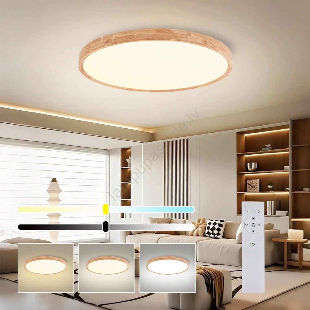 Brilagi - LED dimējama griestu lampa WOODROUND LED/70W/230V 3000-6000K Ø 80 cm koka CRI 90 + tālvadība
