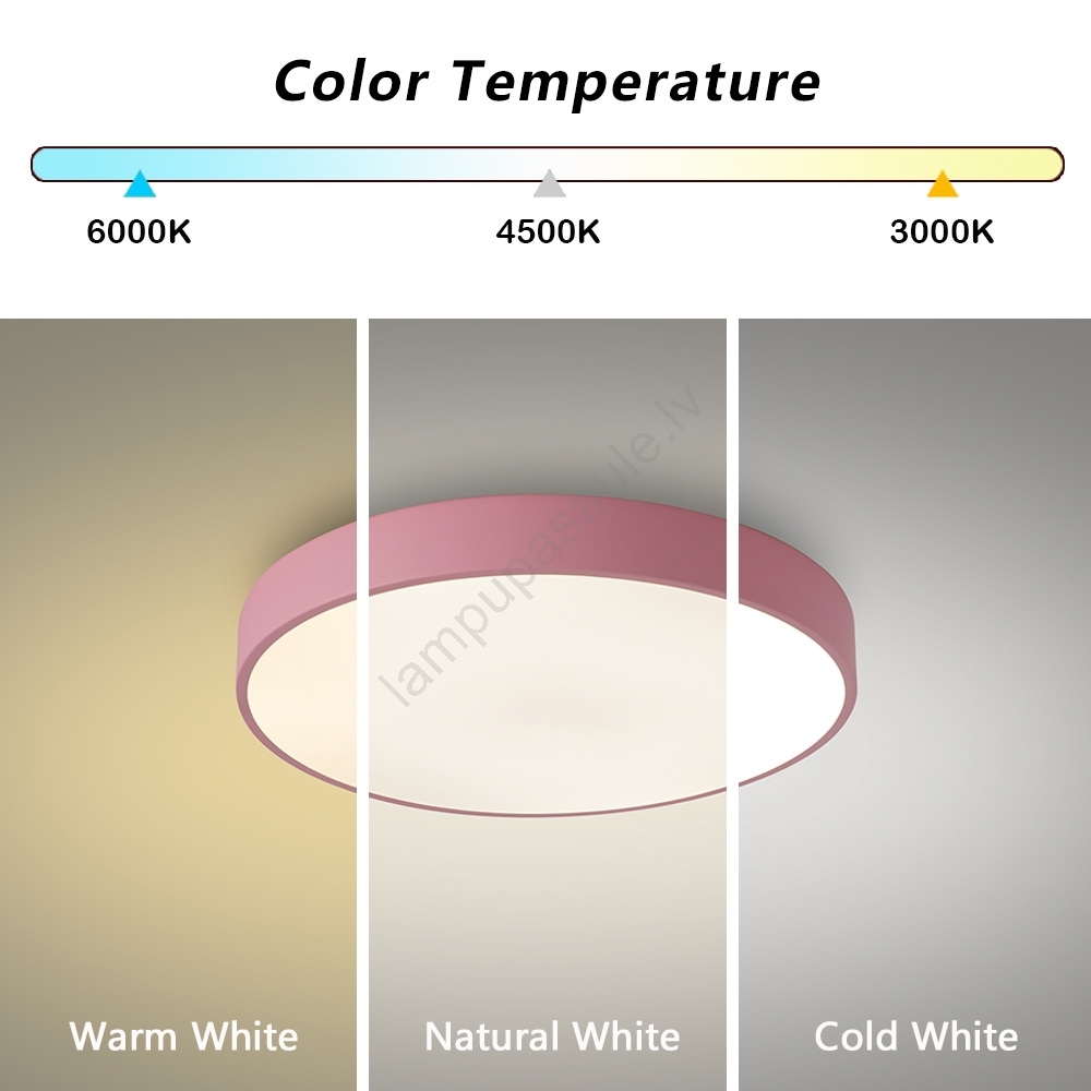 • 6000K – Aukstā baltā gaisma (spilgta, enerģiju sniedzoša gaisma, piemērota koncentrēšanai).