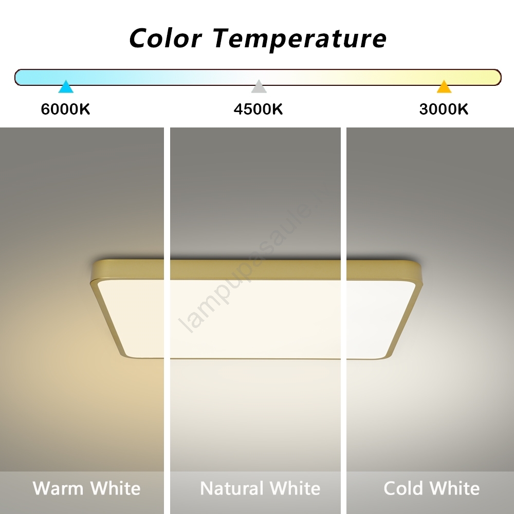 • 6000K – auksta balta gaisma (spilgta, enerģiju sniedzoša gaisma, piemērota koncentrēšanai).