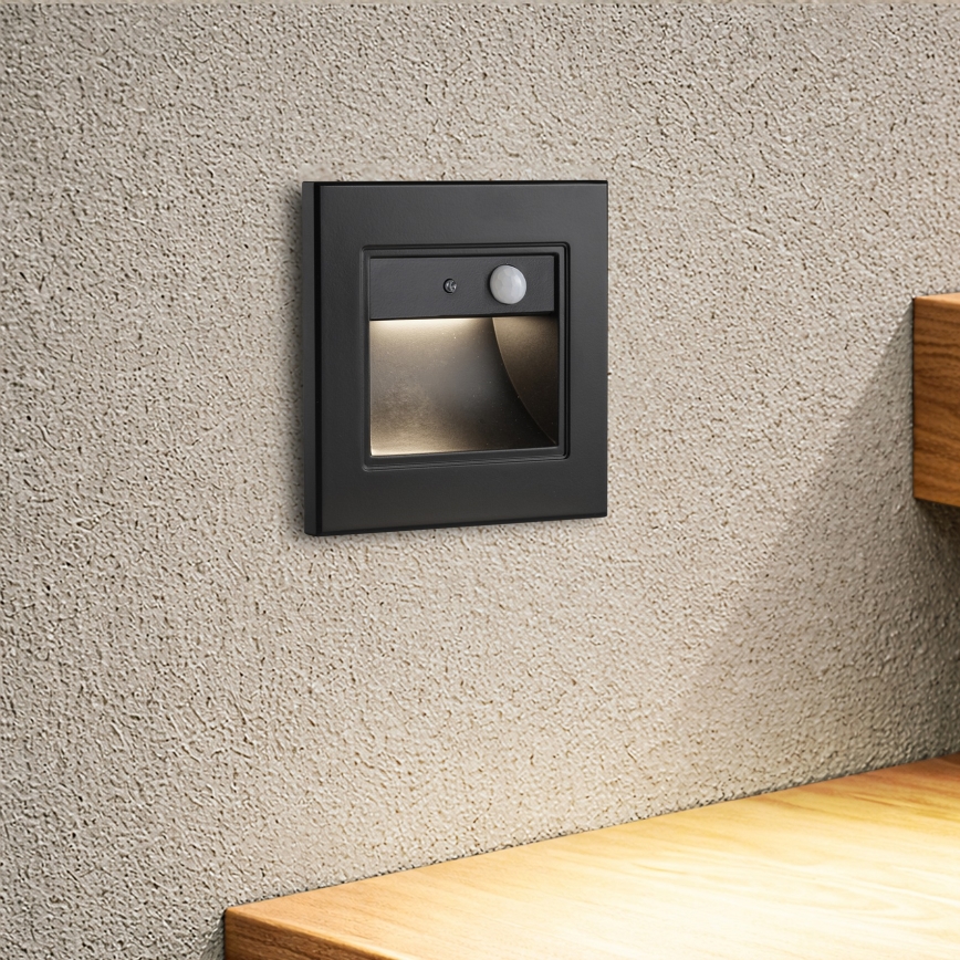 Brilagi - LED kāpņu gaismeklis ar kustību sensoru STEP LIGHT LED/1,5W/230V IP44 melns