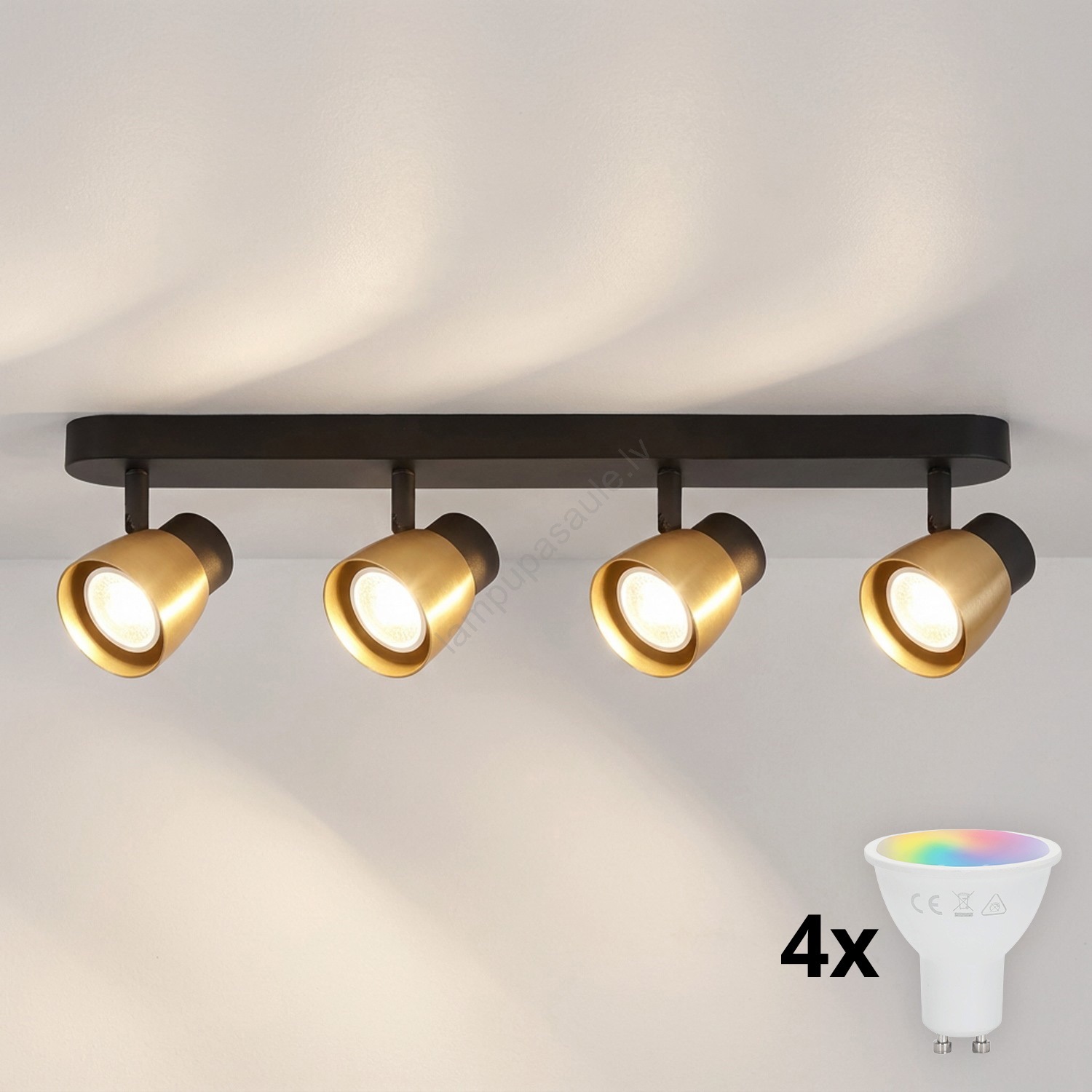 Brilagi - LED RGBW aptumšojams virziena gaismeklis NUGGET 4xGU10/6W/230V 3000K melns/zelts + tālvadības pults