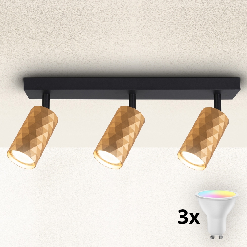 Brilagi - LED RGBW ar spilgtuma regulēšanu punktveida gaismeklis SELE DIAMANT 3xGU10/6W/230V 3000K zelta + tālvadība