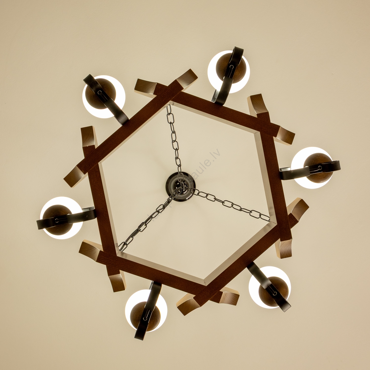 Brilagi - Lustra ar ķēdi QUEEN 6xE14/40W/230V dižskābardis/rieksts | Lampupasaule