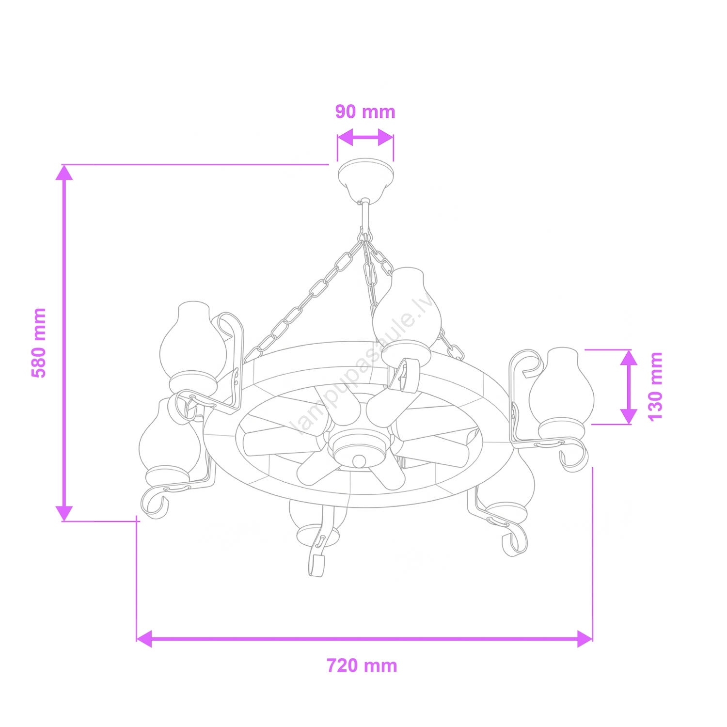 • Brilagi - lustra ar ķēdi ROATA 6xE14/40W/230V Ø 70 cm, dižskābardis/valrieksts
