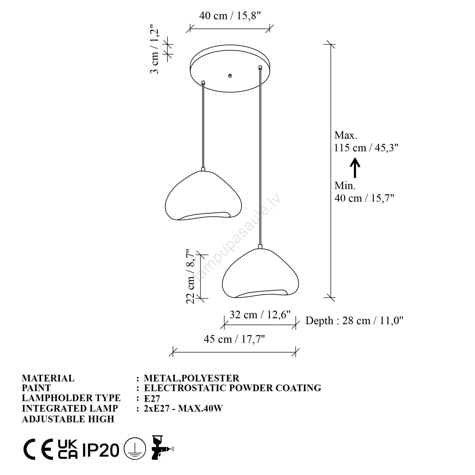 Brilagi - Pakaramā lampa ar vadu WABI SABI 2xE27/40W/230V Ø 45 cm balta