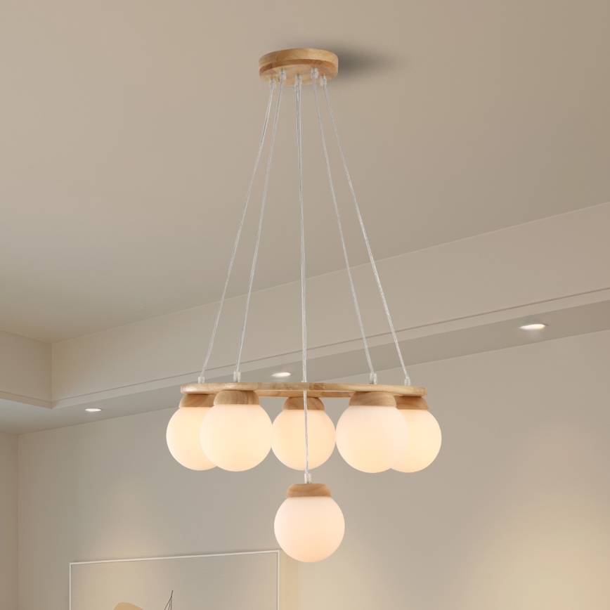 Brilagi - Karājamā lustra uz vada VISBY WOOD 6xE27/60W/230V Ø 58 cm, koka