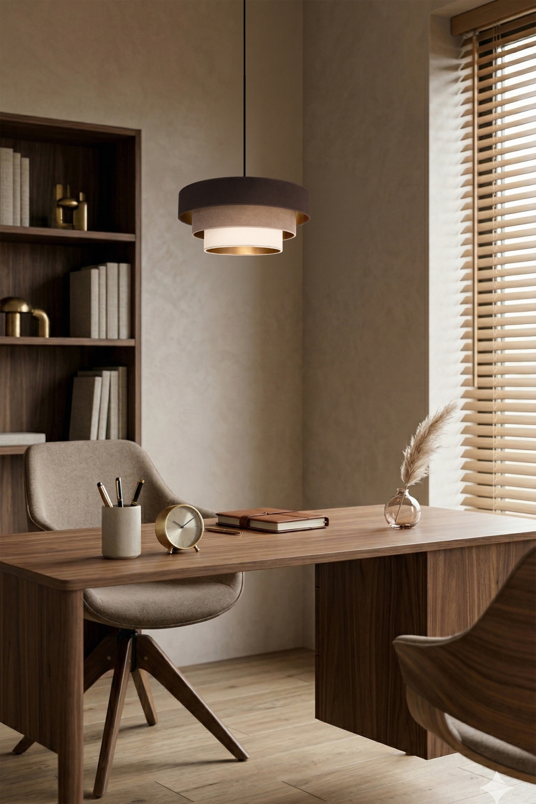 • Brilagi - Piekaramā lampa ar vadu LUNETA 1xE27/60W/230V Ø 40 cm brūna/bēša/krēmkrāsa