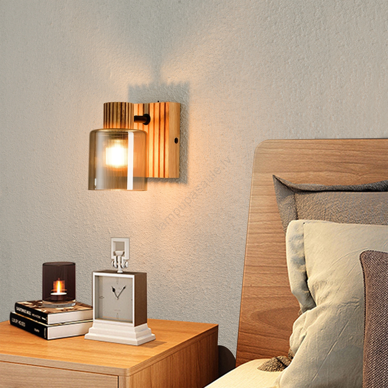 Brilagi - Sienas punktveida gaismeklis HYGGE 1xE14/15W/230V koka/dūmakaina | Lampupasaule