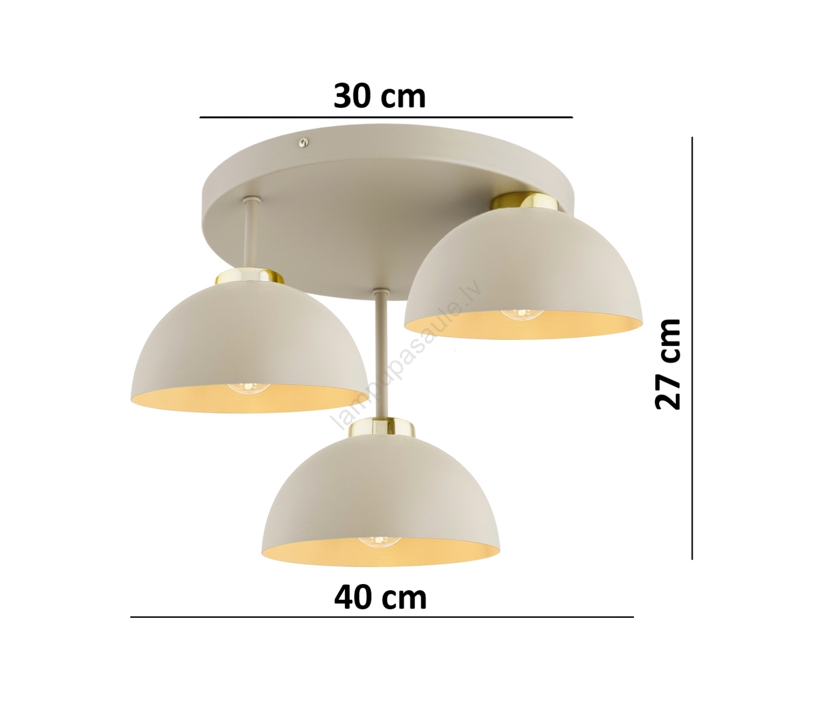 Brilagi - tieši pie griestiem piestiprināma lustra 3xE27/60W/230V bēša/zeltaina izceļas ar jauku un funkcionālu dizainu.  Spuldze ar E27 cokolu irpiemērota lampai. Šeit, varat iegādāties citas spuldzes par izdevīgām cenām. Tā būs interesants jūsu mājas papildinājums.