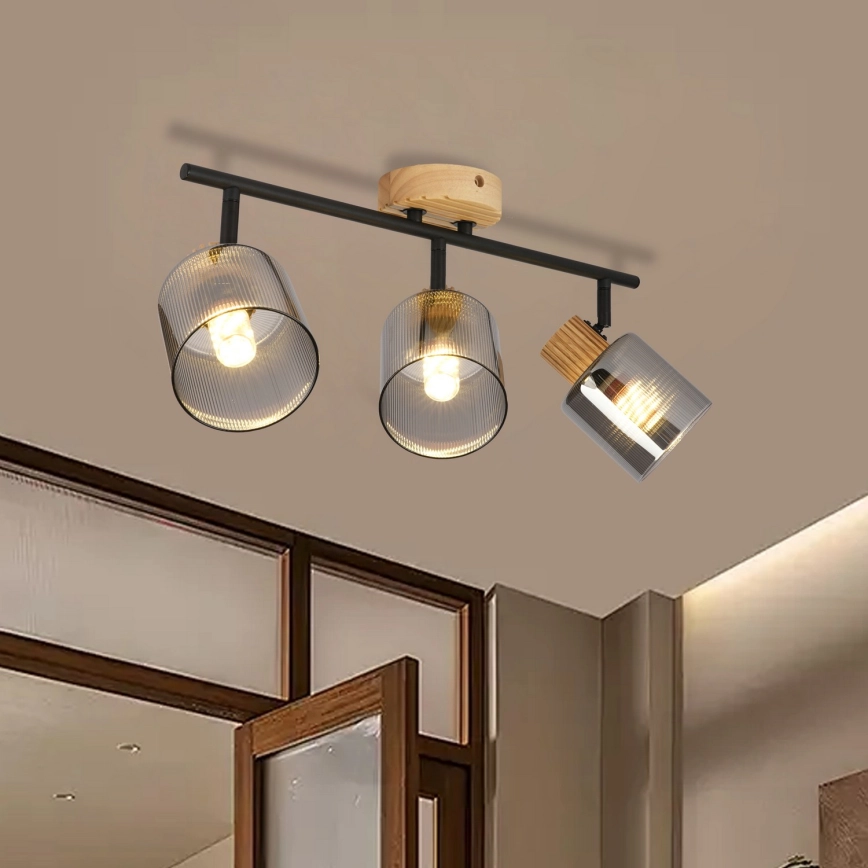 • Brilagi - Virziena gaismeklis HYGGE 3xE14/15W/230V kaučuka koks/dūmakains