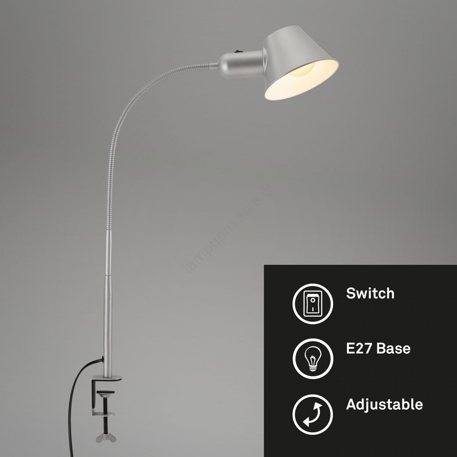Brilo - elastīga galda lampa ar skavu 1xE27/10W/230V sudraba