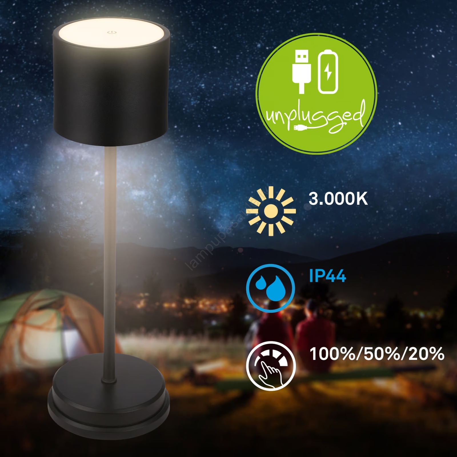 Briloner 7521015 - LED regulējamā āra uzlādējamā galda lampa SIGO LED/2,5W/5V IP44 2600 mAh melna