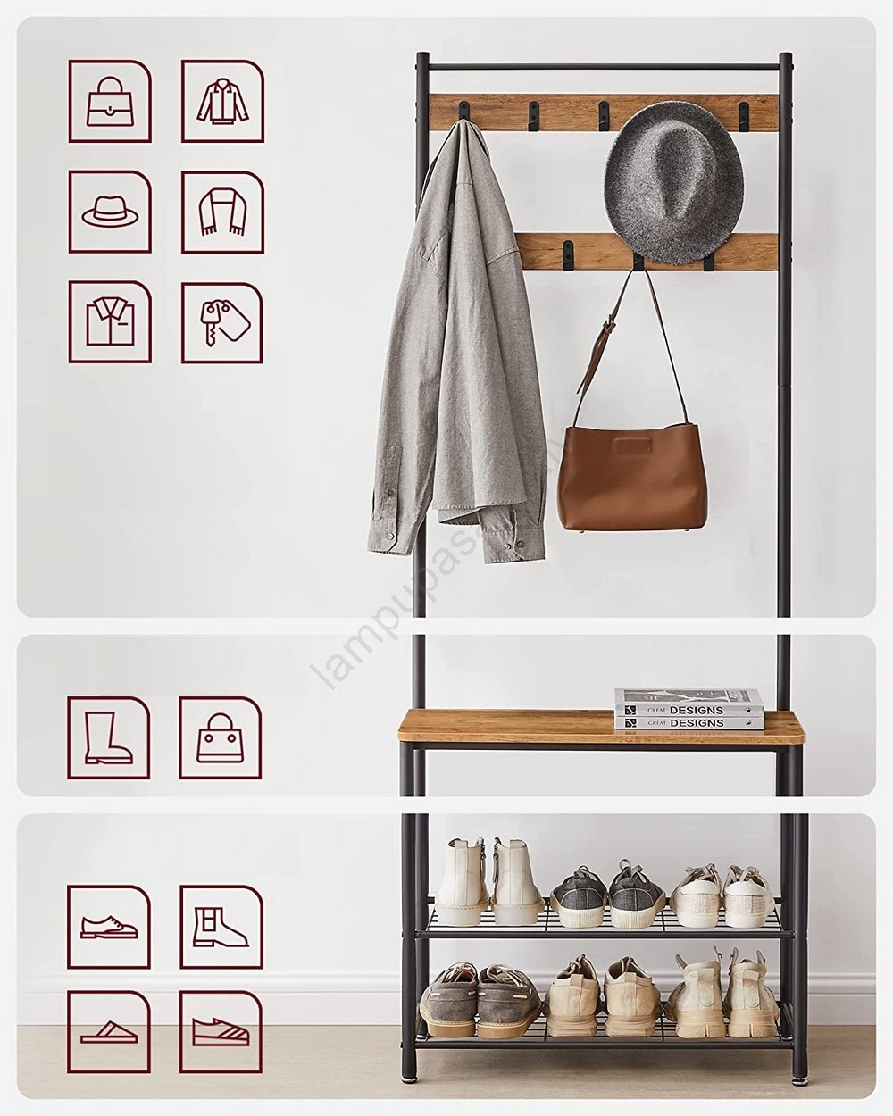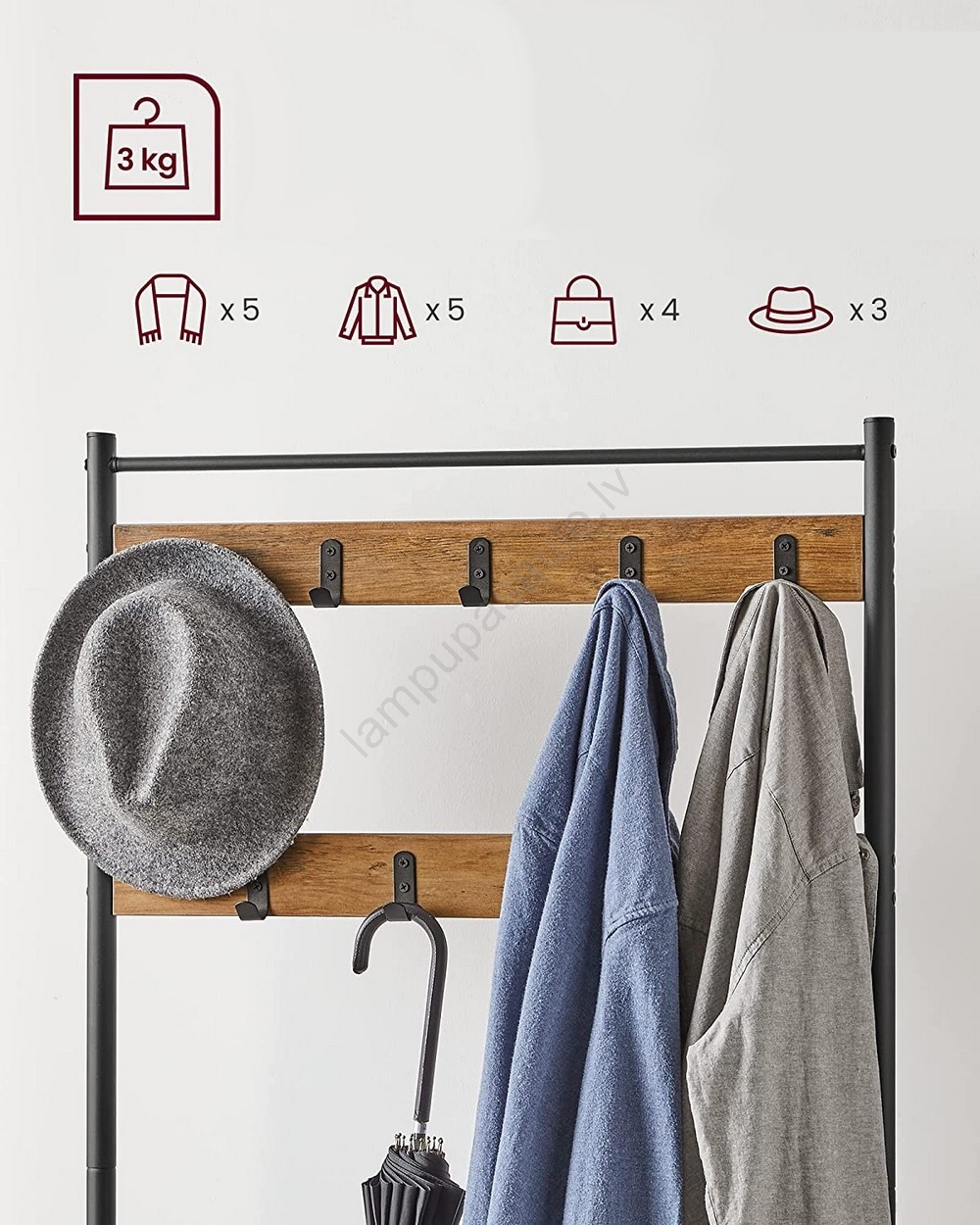 Brīvi stāvošs drēbju pakaramais NAVOR, brūns/melns | Lampupasaule