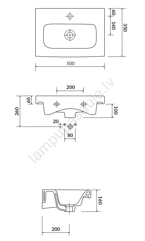 • Izlietnes jaucējkrāns un sifons nav iekļauti komplektā.