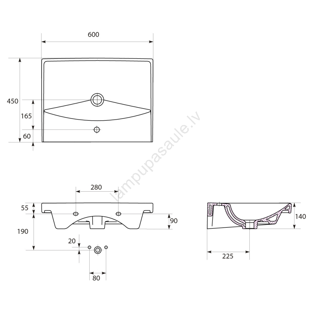 • Izlietnes jaucējkrāns un sifons nav iekļauti komplektācijā.