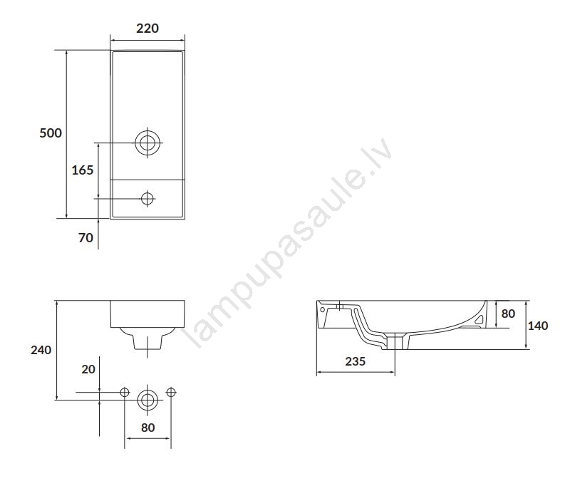 • Izlietnes jaucējkrāns un notekas komplekts nav iekļauti komplektācijā.