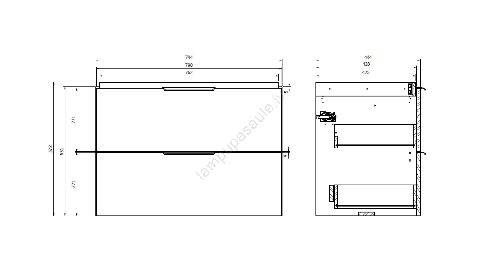 • Skapītī ir divas plašas atvilktnes ar mīksto aizvēršanas mehānismu.