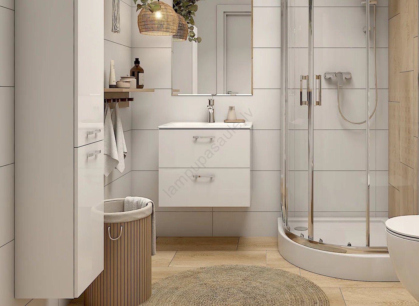 • Skapītis lieliski iederas modernās vannasistabās, piedāvājot tīru izskatu un praktisku telpas izmantošanu.