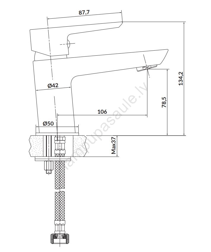 • Metāla aizbīdnis ar pieslēguma šļūtenēm ir komplektā.