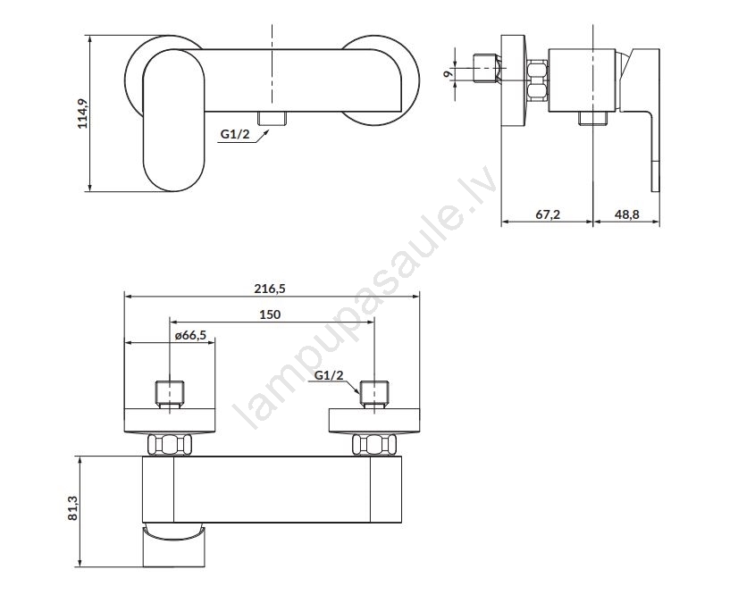 Cersanit S951-321 - Dušas ūdens krāns CREA melna | Lampupasaule
