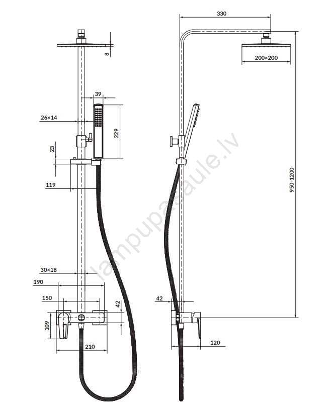 • Komplekts aprīkots ar ABS plastmasas roku dušu.