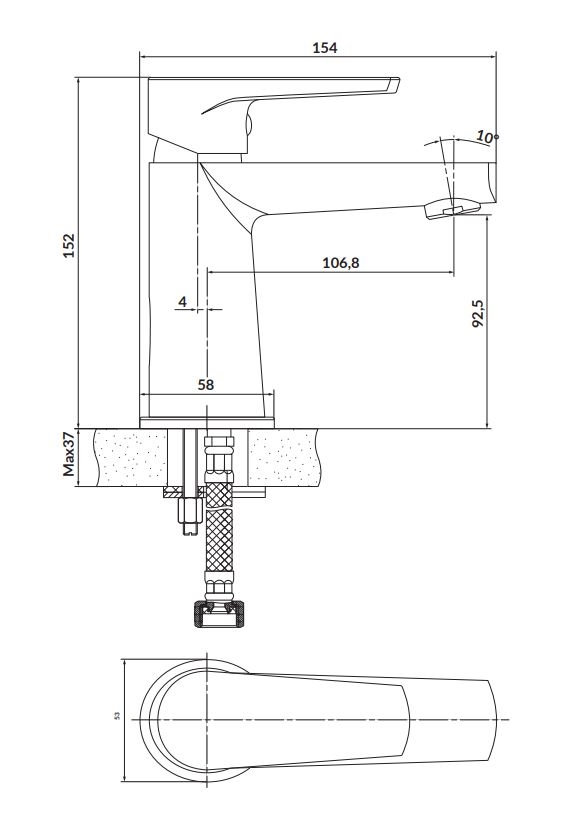 • Pievienošanas šļūtenes ar garumu 40 cm ir komplektā.