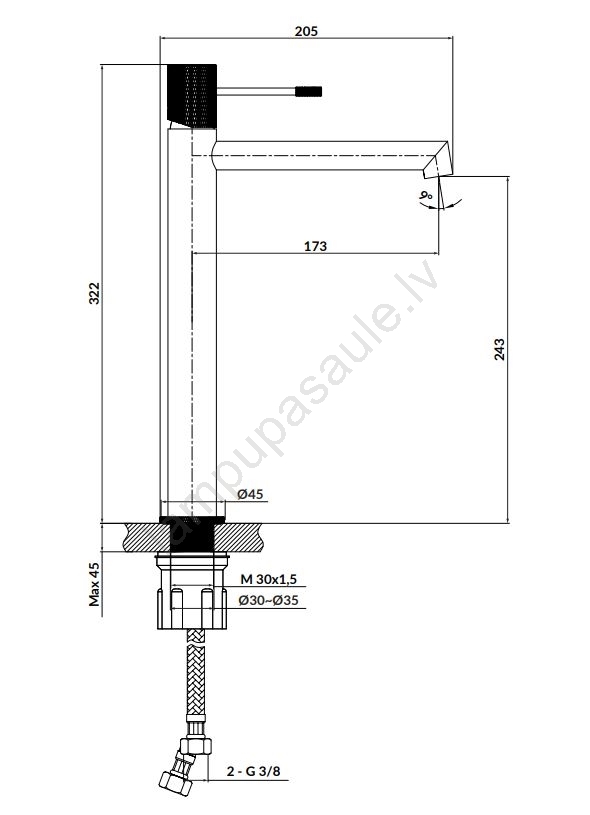 • Pievienošanas šļūtenes ar garumu 60 cm ir komplektā.