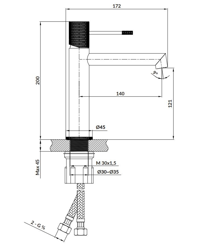 • Pievienošanas šļūtenes ar garumu 60 cm ir komplektā.