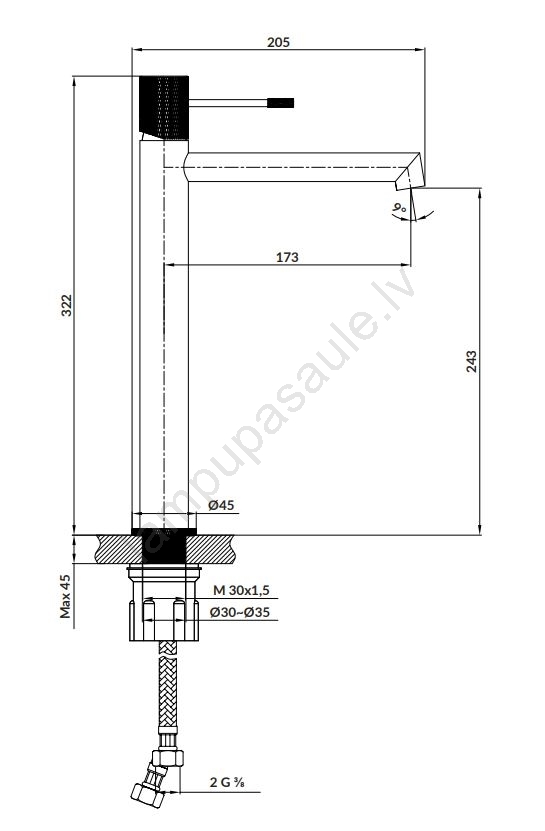 • Vadības elements: 25 mm keramikas kasete.