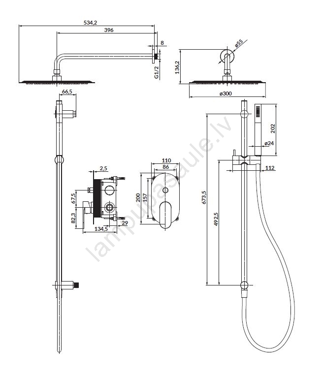 • Šī dušas komplekts ir elegants papildinājums jebkurai vannas istabai.