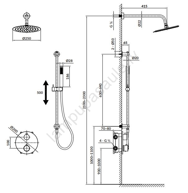 • Šī dušas komplekts ar termostatiski iebūvētu jaucējkrānu ir elegants papildinājums jebkurai vannas istabai.