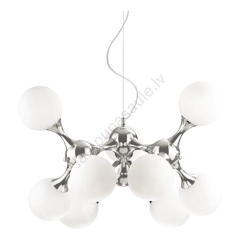 Ideal Lux - NODI pakaramā lustra uz troses, 9xE14/28W/230V, Ø 80 cm, spīdīgs hroms/balts izceļas ar jauku un funkcionālu dizainu.  Spuldze ar E14 cokolu irpiemērota lampai. Šeit, varat iegādāties citas spuldzes par izdevīgām cenām. Tā būs interesants jūsu mājas papildinājums.