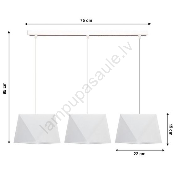 Lustra ar auklu DIAMENT 3xE27/60W/230V balts izceļas ar jauku un funkcionālu dizainu.  Spuldze ar E27 cokolu irpiemērota lampai. Šeit, varat iegādāties citas spuldzes par izdevīgām cenām. Tā būs interesants jūsu mājas papildinājums.