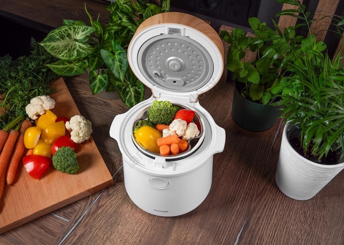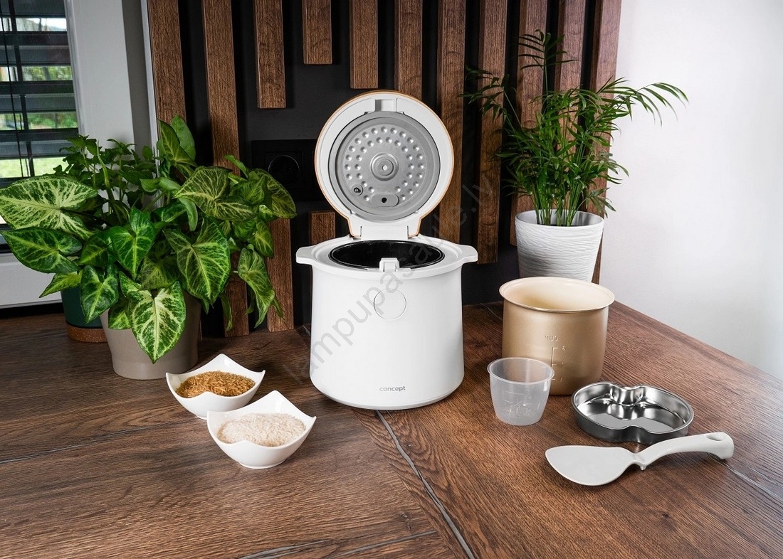 Concept RE3030 - Digitālais rīsu vārītājs 2 vienā 380W/230V 1,5 l balts/koka dekors