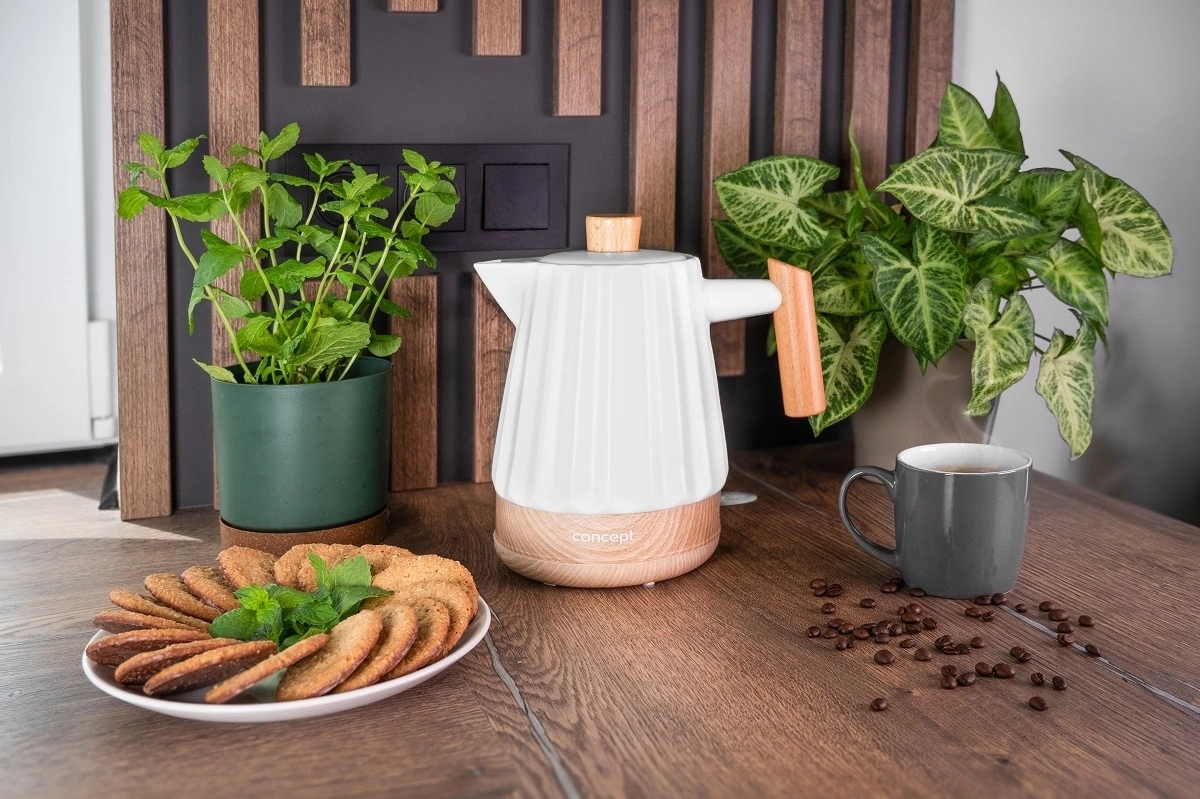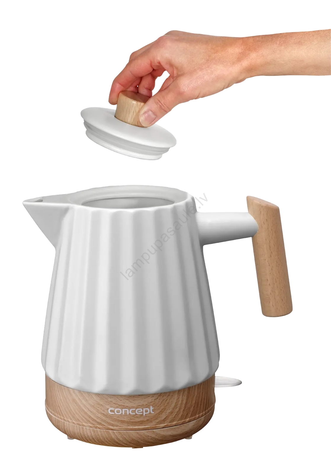 Concept RK0090 - ātrā elektriskā tējkanna 1,5 l 1500W/230V balta/koka dekors/keramika