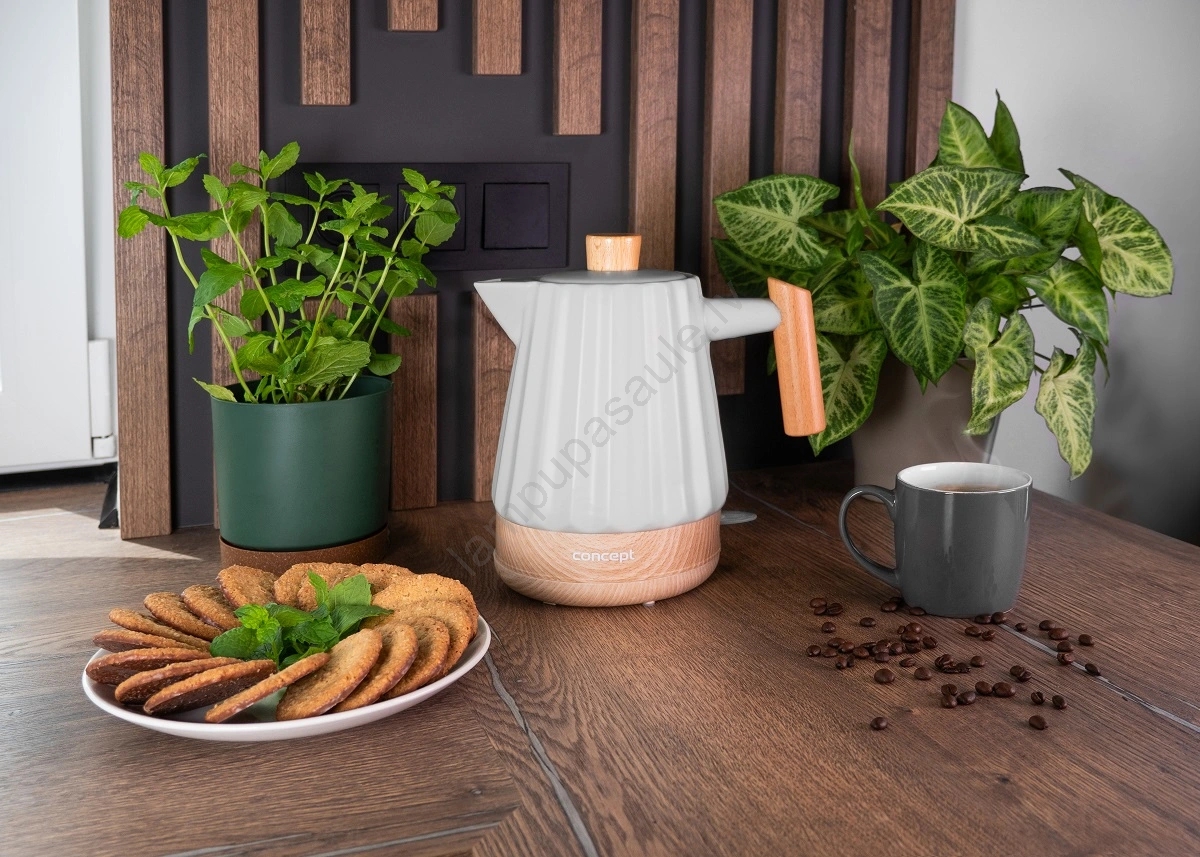 Concept RK0091 - Elektriskā tējkanna 1,5 l 1500W/230V gaiši pelēka/koka dekors/keramika