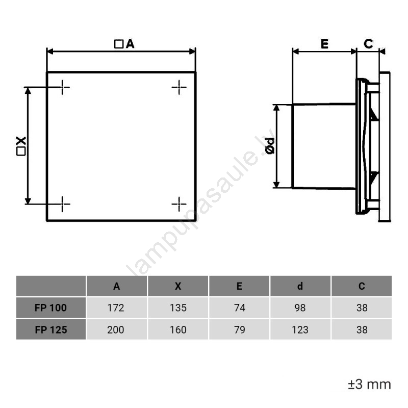 • Ventilators ir saderīgs ar caurulēm ar diametru 125 mm.