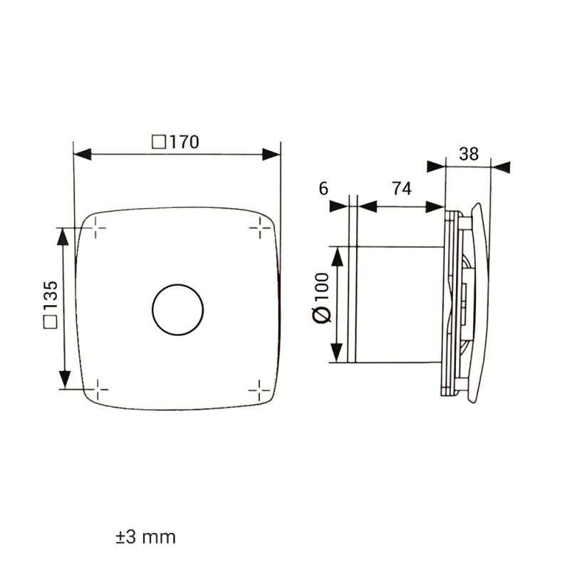 • Ventilators ir saderīgs ar caurulēm ar diametru 100 mm.