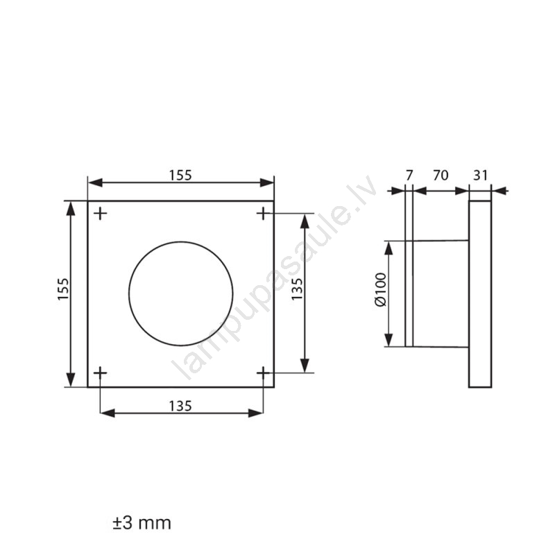 • Ventilators ir savietojams ar 100 mm diametra ventilācijas kanāliem.